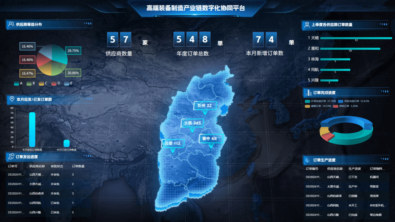 数字转型、智慧赋能,近日,公司高端装备制造产业链数字化协同平台成功上线,实现了技术资料一键共享,数据动态实时监测。该平台由公司改革创新部、制造部牵头组织,数智公司研发建设,截至目前,已在57家产业链上游企业试点运行。数据跑起来过去,要靠线下跑腿取图纸、人工录入订单信息,不仅耗时还易出错。如今,平台打通内部采购管理SRM系统、制造运营管理MOM系统,有效实现订单数据、设计工艺数据、质量检验数据一体化下发,并自动生成产业链上游企业的销售订单、...